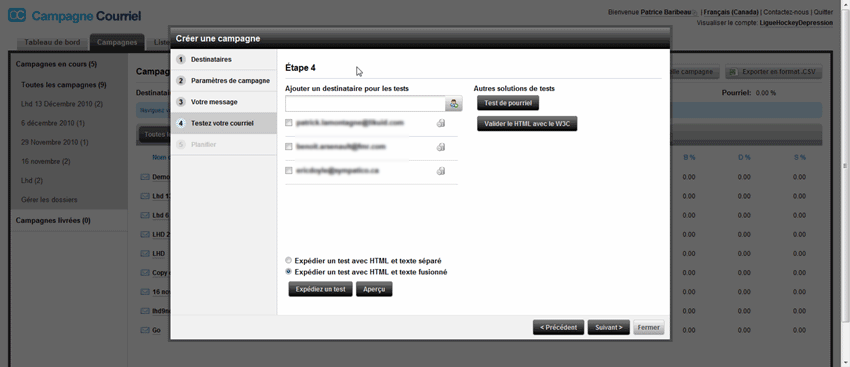 - Envoi d'une campagne
